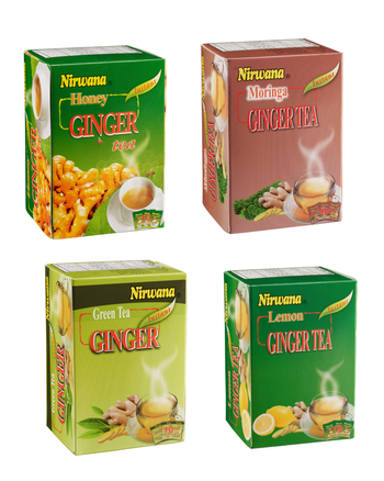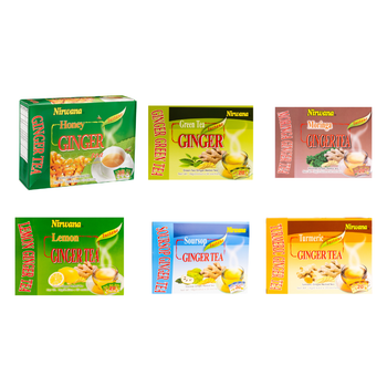 Nirwana Ginger Tea – Wholesale Case of 24 Boxes (240 Sachets Total) | 10 Sachets per Box | 4 Flavor Variants | Instant Herbal Tea