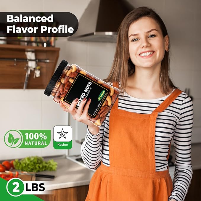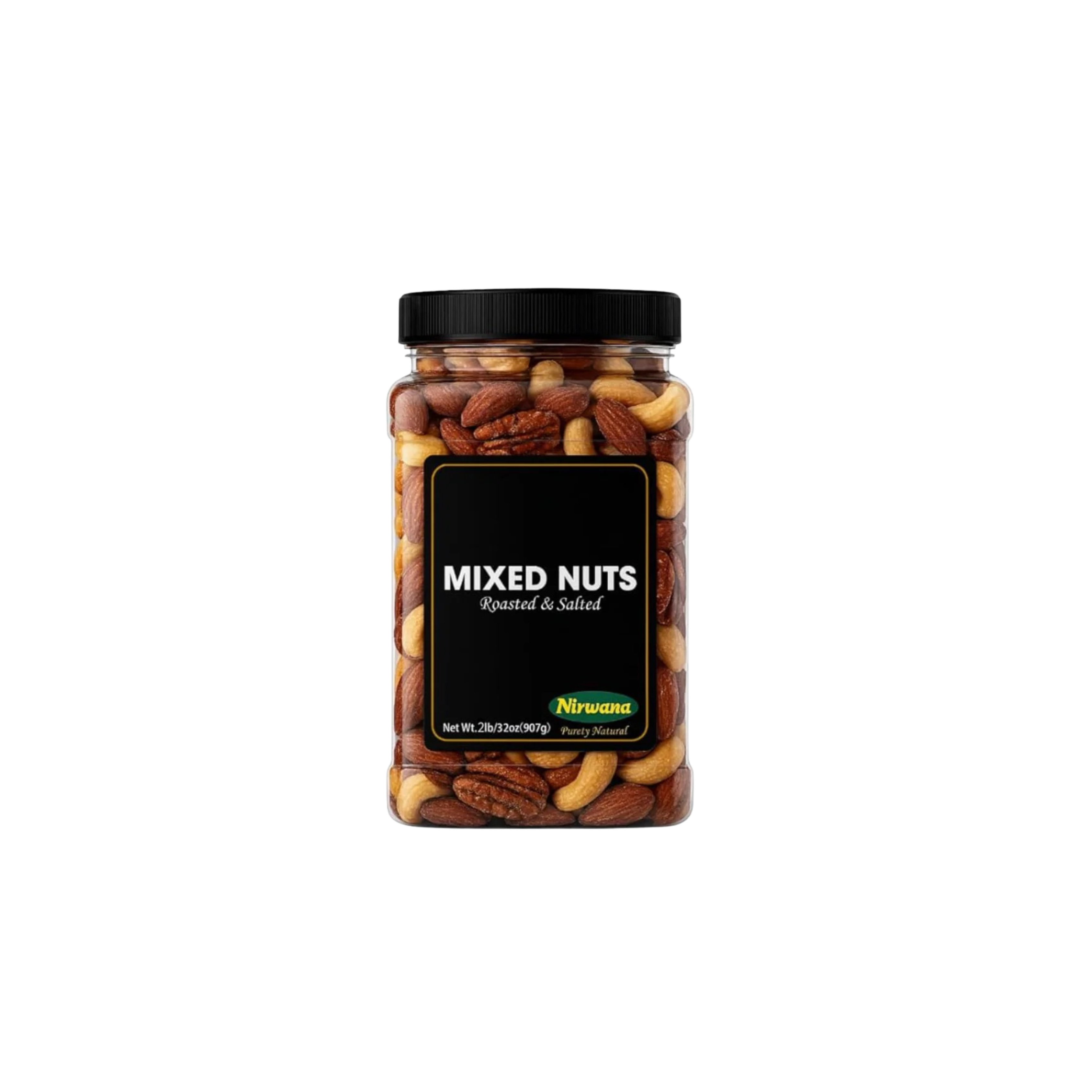 Enjoy the perfect blend of roasted and lightly salted nuts with Nirwana Mix Nuts, combining cashews, almonds, pistachios, and more for a delicious, protein-packed snack. Ideal for snacking, baking, cooking, or gifting, these nuts are naturally vegan, gluten-free, and preservative-free.
