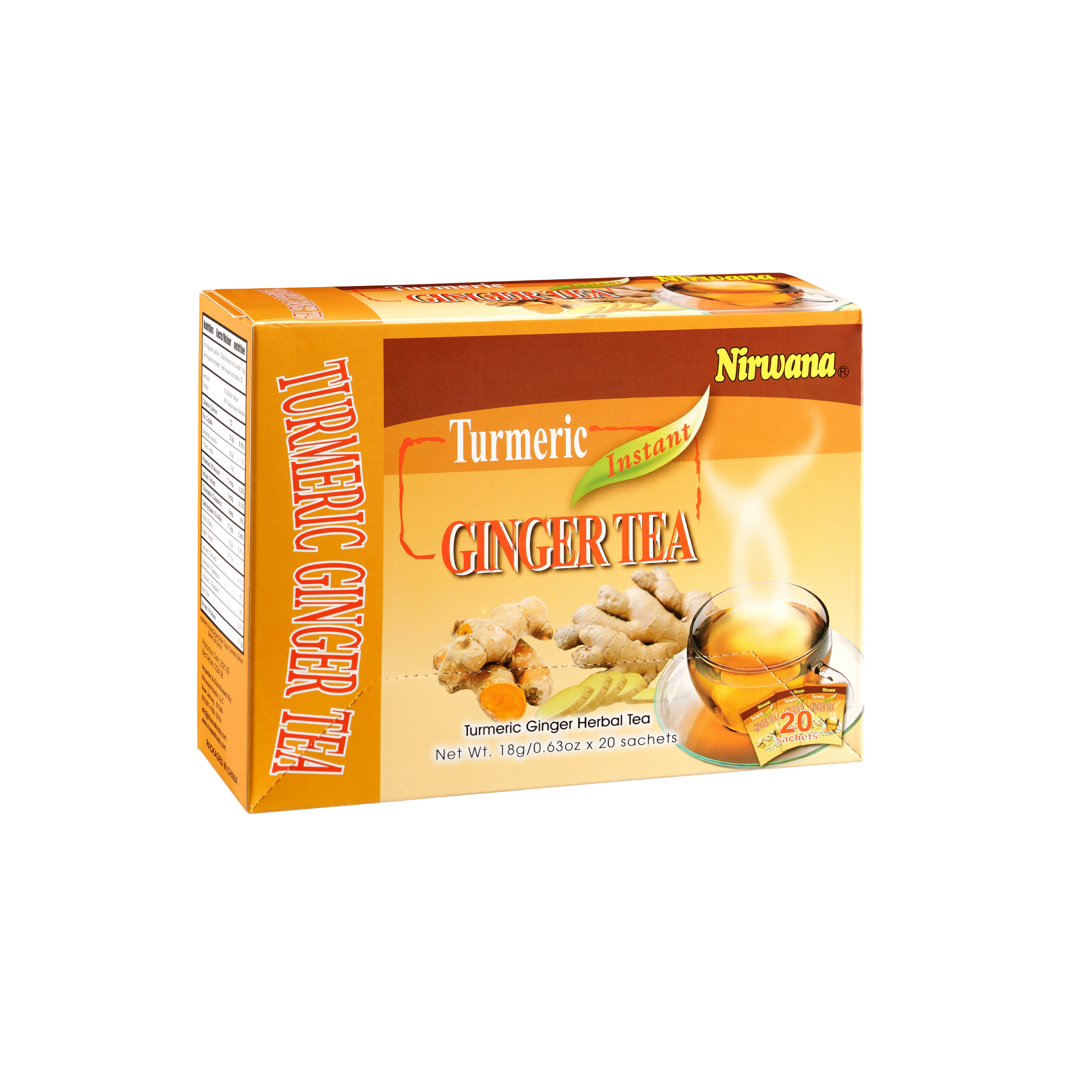 Boost your wellness with Nirwana Turmeric Ginger Tea, a soothing herbal blend of turmeric, ginger, and natural spices. Each sachet delivers a warm, flavorful cup that supports digestion, immunity, and overall vitality.