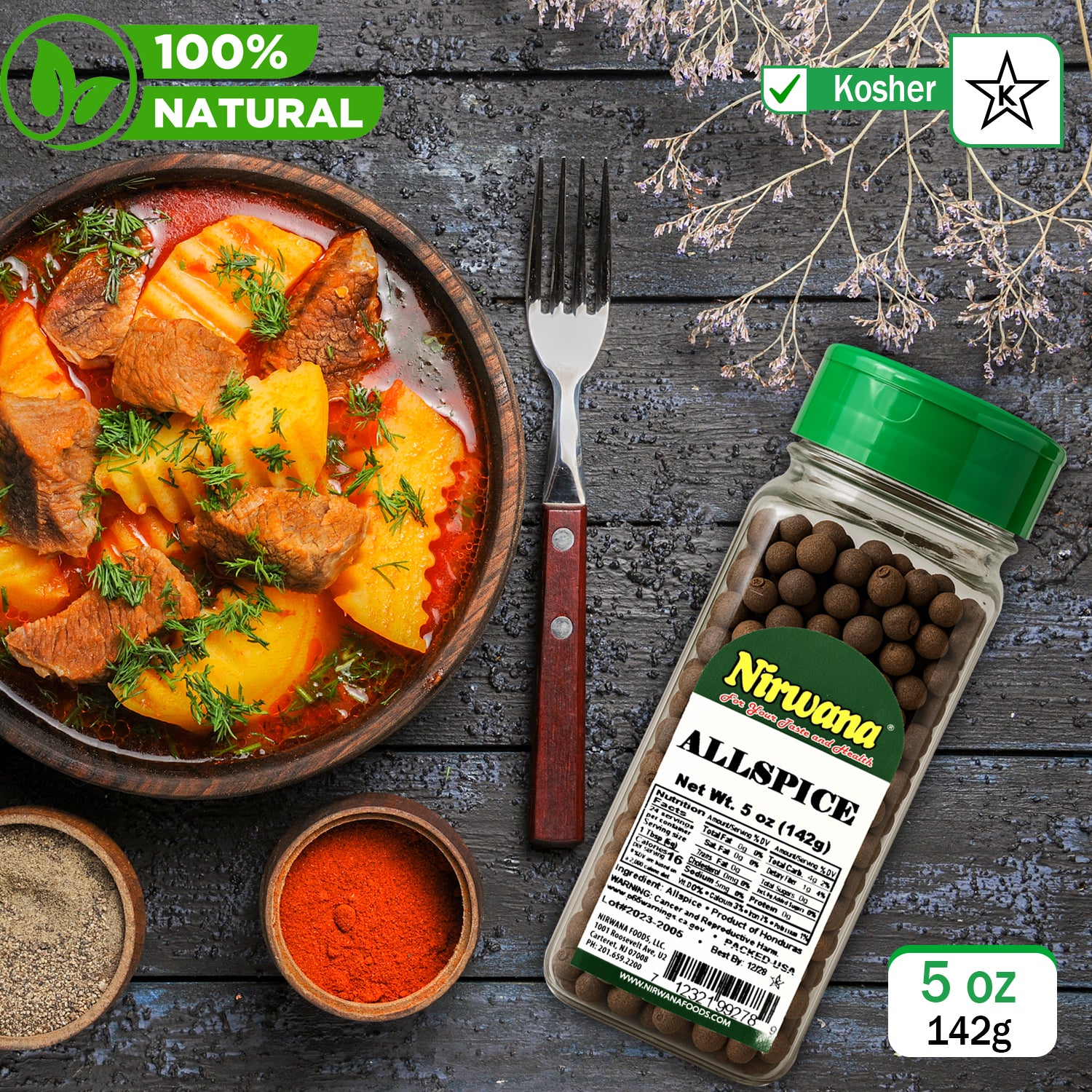 Add warm, rich, and aromatic flavor to your recipes with Nirwana Allspice – 5oz Small Jar. Made from high-quality dried pimenta berries, this premium allspice delivers notes of cinnamon, nutmeg, and clove all in one spice perfect for baking, marinades, stews, curries, desserts, and savory dishes.