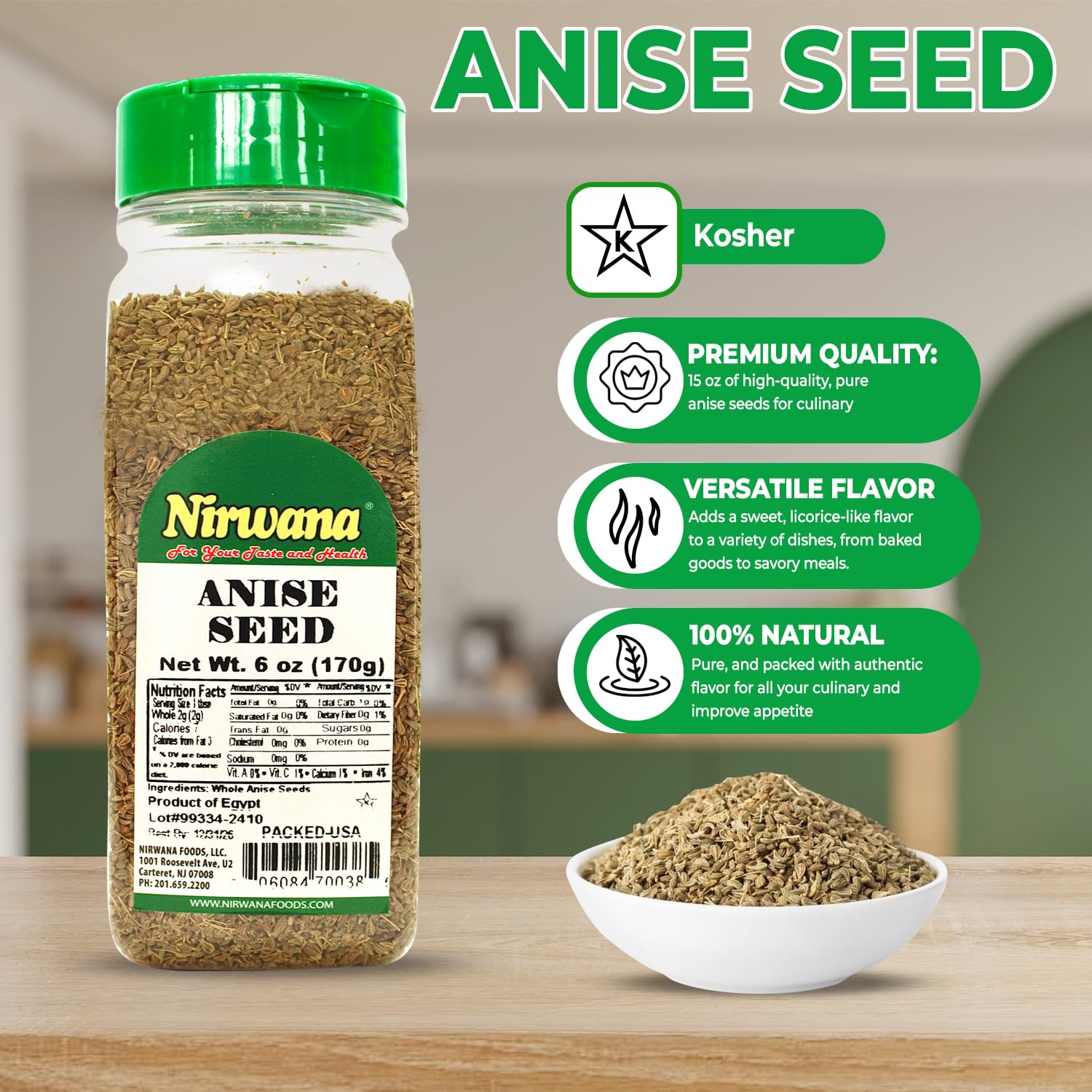 Nirwana Anise Seed – 6oz Small Jar | Premium Whole Anise for Cooking, Baking & Spice Blends