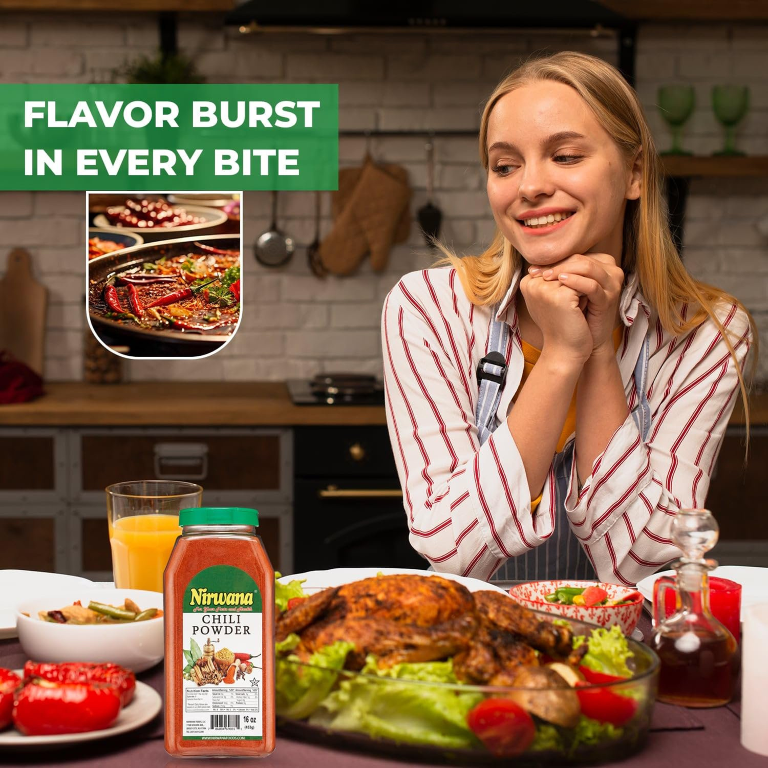 Add vibrant color, bold heat, and rich flavor to your dishes with Nirwana Chili Powder – 16oz Medium Jar. Carefully ground from premium-quality dried chilies, this chili powder delivers balanced heat and deep aroma—perfect for curries, stews, tacos, marinades, rubs, soups, and everyday cooking.