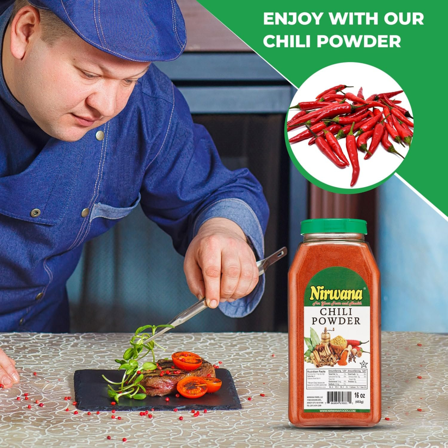 Nirwana Chili Powder – 16oz Medium Jar | Premium Ground Chili for Cooking, Seasoning & Spice Blends