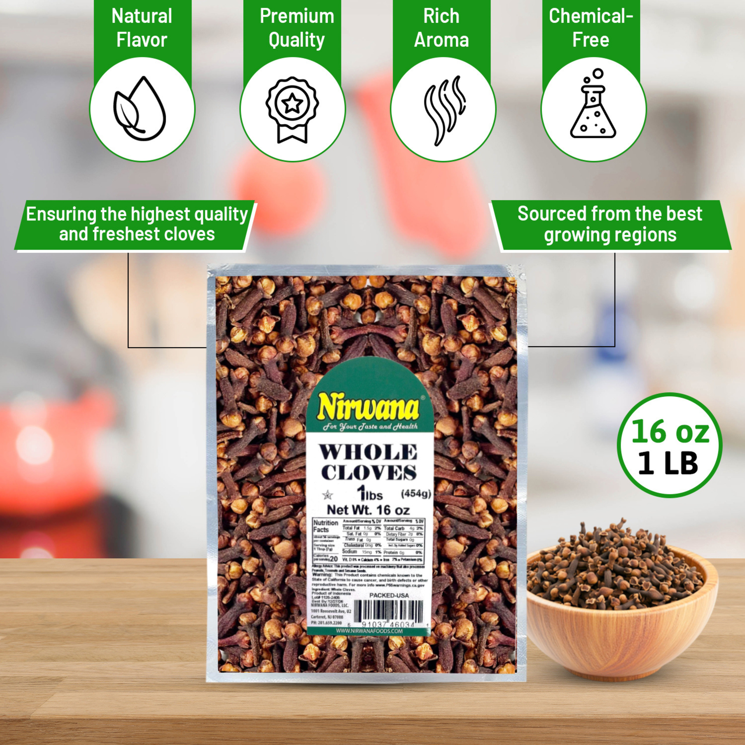 Nirwana Whole Cloves (Luang • Clavo) – 1lb / 16oz Pouch | Handpicked Big Flower Buds | Premium Aromatic Cloves for Curries, Baking & Herbal Mixes