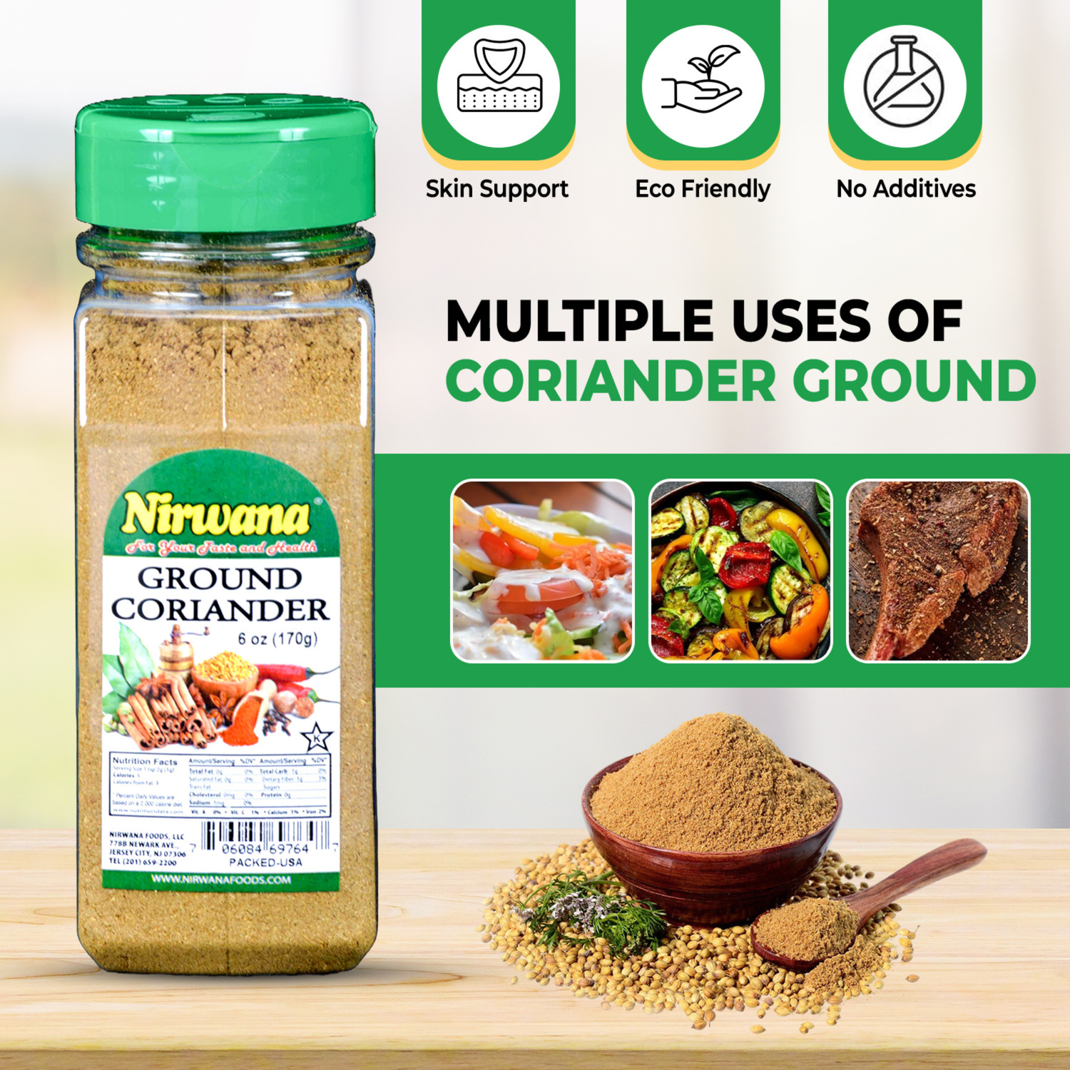 Nirwana Coriander Powder – 6 oz Small Jar | Fresh, Aromatic Spice for Cooking & Spice Blends