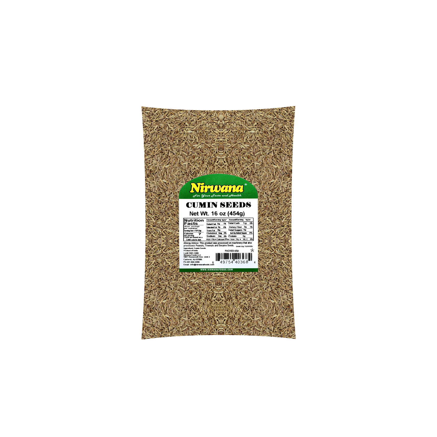 Nirwana Cumin Seeds – Bold Flavor, 16oz / 1lb Pouch | Premium Whole Cumin for Cooking & Spice Blends