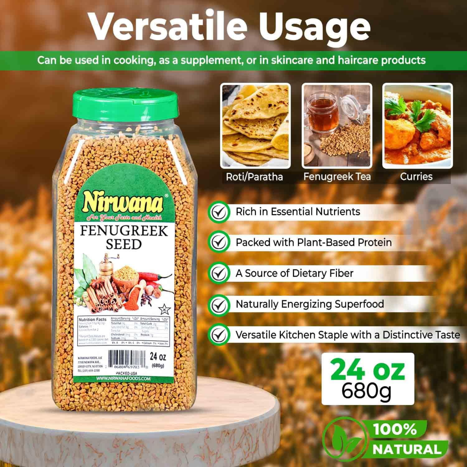 Quality: All-natural, non-GMO, premium-grade fenugreek seeds