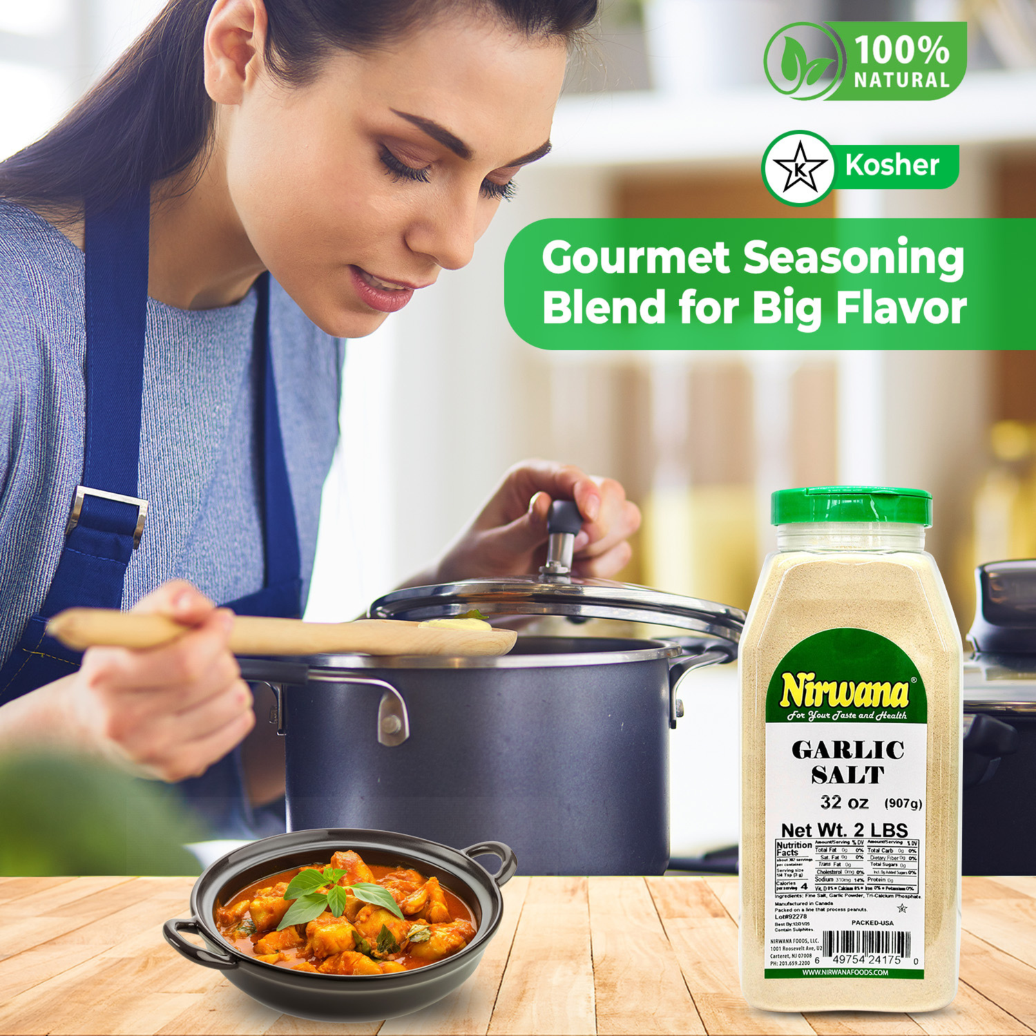 Add savory flavor to your dishes with Nirwana Garlic Salt – 32oz Medium Jar. Made from premium garlic and high-quality salt, this versatile seasoning is perfect for soups, sauces, marinades, roasted vegetables, meats, and everyday cooking. Packaged in a resealable medium jar to maintain freshness and quality, it’s ideal for home kitchens, restaurants, and professional chefs.