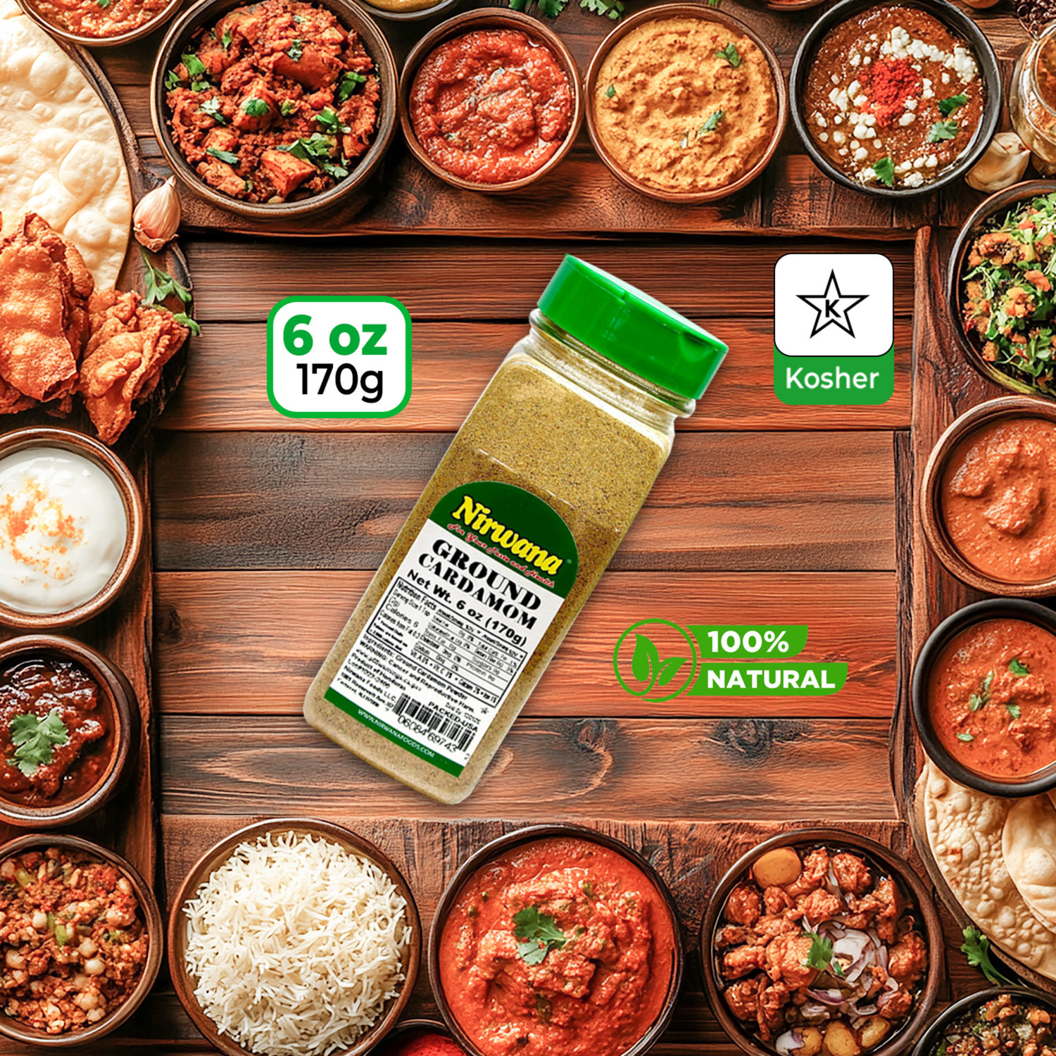 Nirwana Ground Cardamom – 6oz Small Jar | Premium Aromatic Cardamom Powder for Baking & Cooking