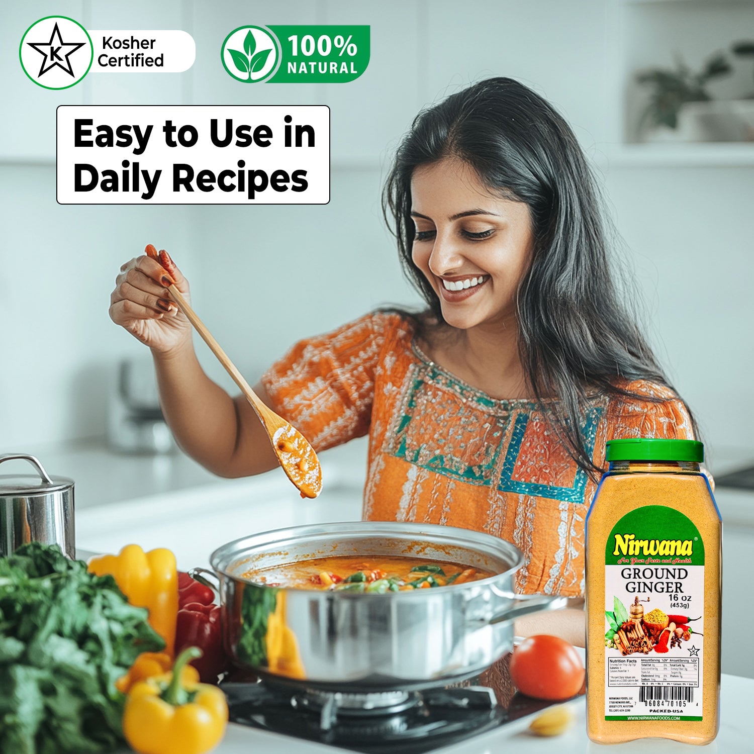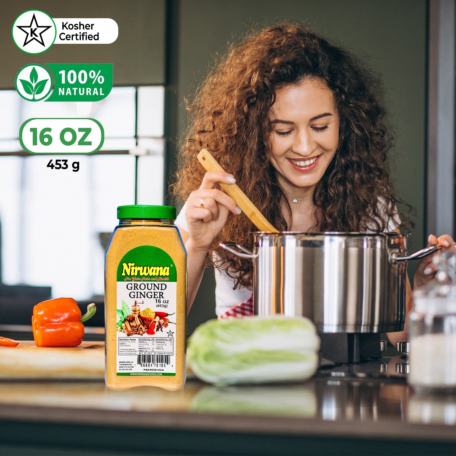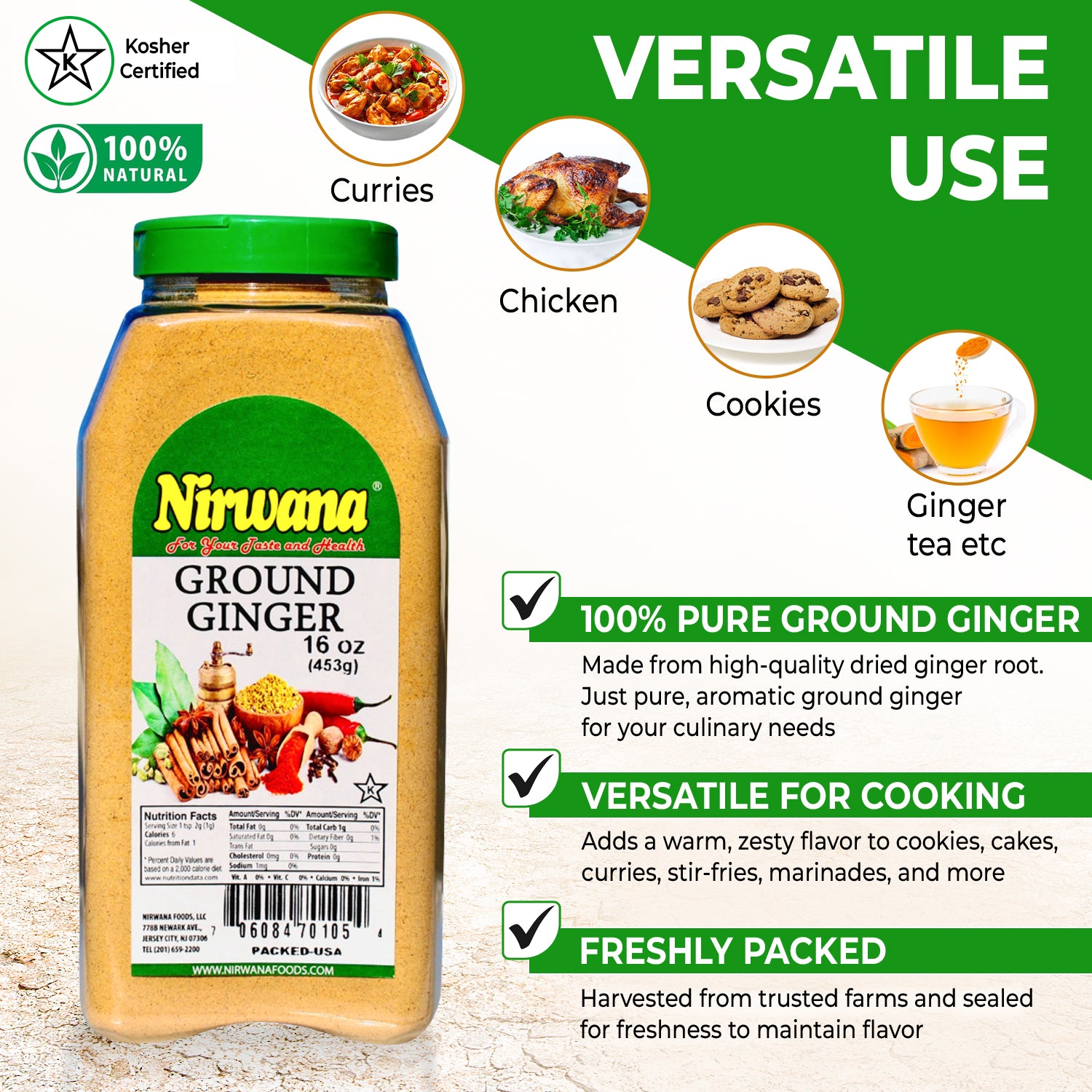 Nirwana Ground Ginger – 16oz Medium Jar | Premium Aromatic Spice for Cooking & Spice Blends