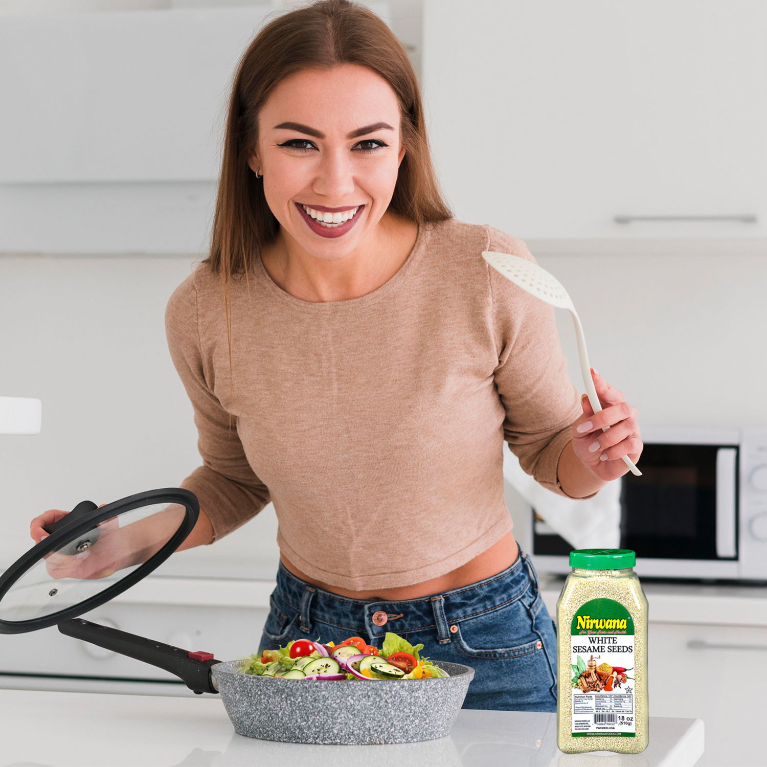 Add a nutty flavor and delicate crunch to your dishes with Nirwana White Sesame Seeds – 12oz. Carefully selected for quality and freshness, these premium whole sesame seeds are perfect for baking, salads, stir-fries, dressings, granola, and as a garnish on breads, rolls, and snacks.