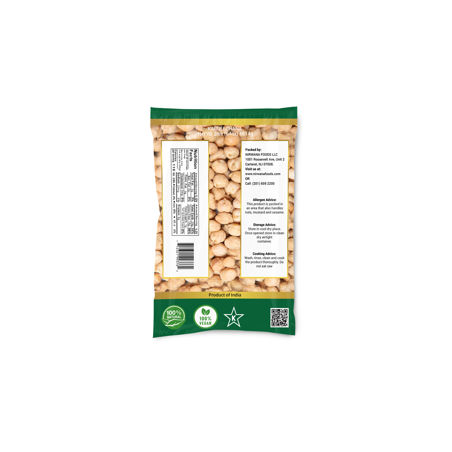 Quality: Premium, non-GMO whole white chickpeas (Kabuli Chana)