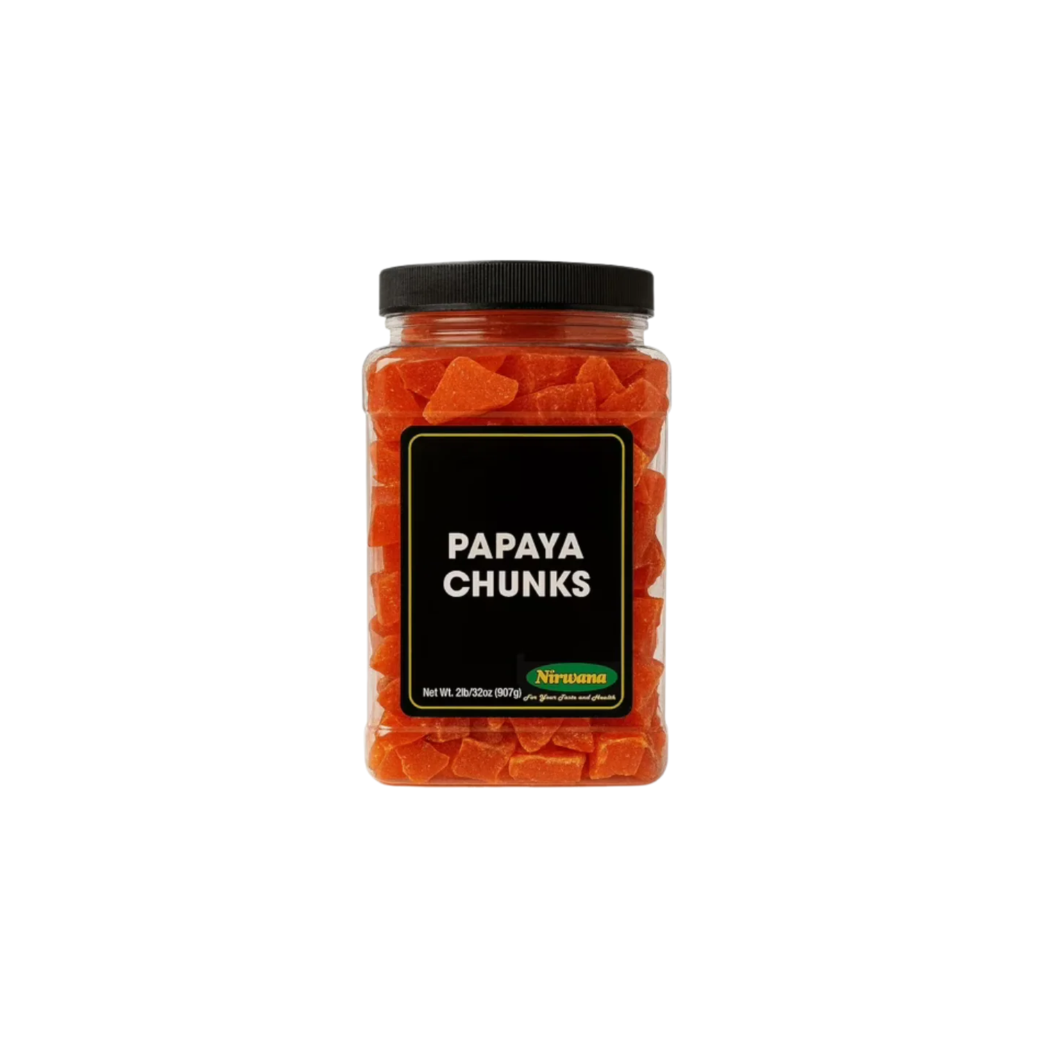 Delight in the tropical taste of Nirwana Papaya Chunks, made from sun-ripened papayas carefully dried to preserve their natural sweetness and nutrients. These vibrant orange chunks are perfect for healthy snacking, baking, trail mixes, and desserts.