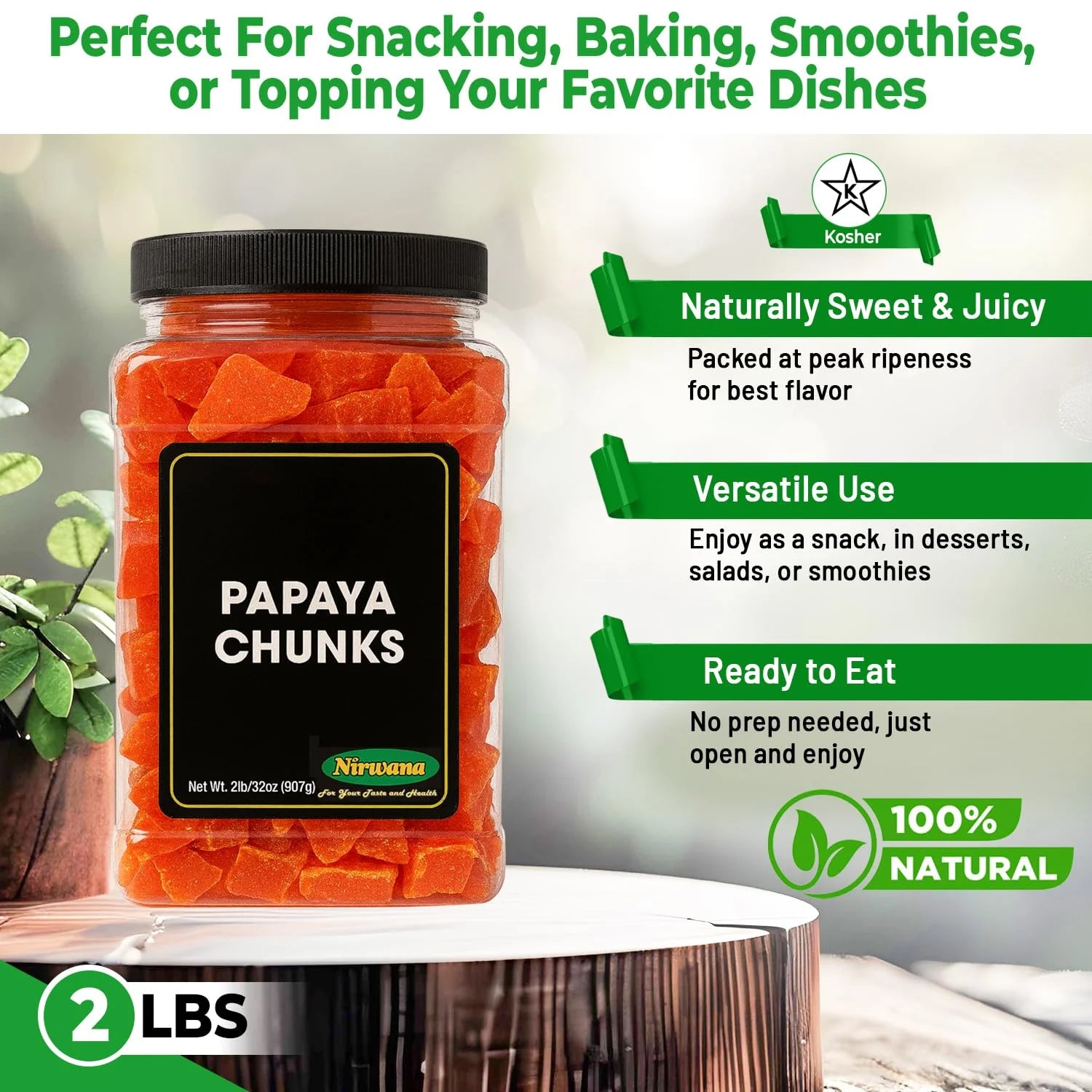 Nirwana Papaya Chunks – Large Jar (1.75 lbs) | Premium Dried Papaya